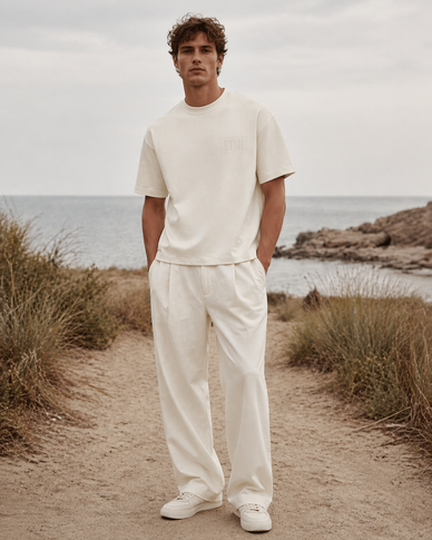 The tee has a solid weight without feeling too heavy. The boxy cut sits right at the waist and feels easy to style.
